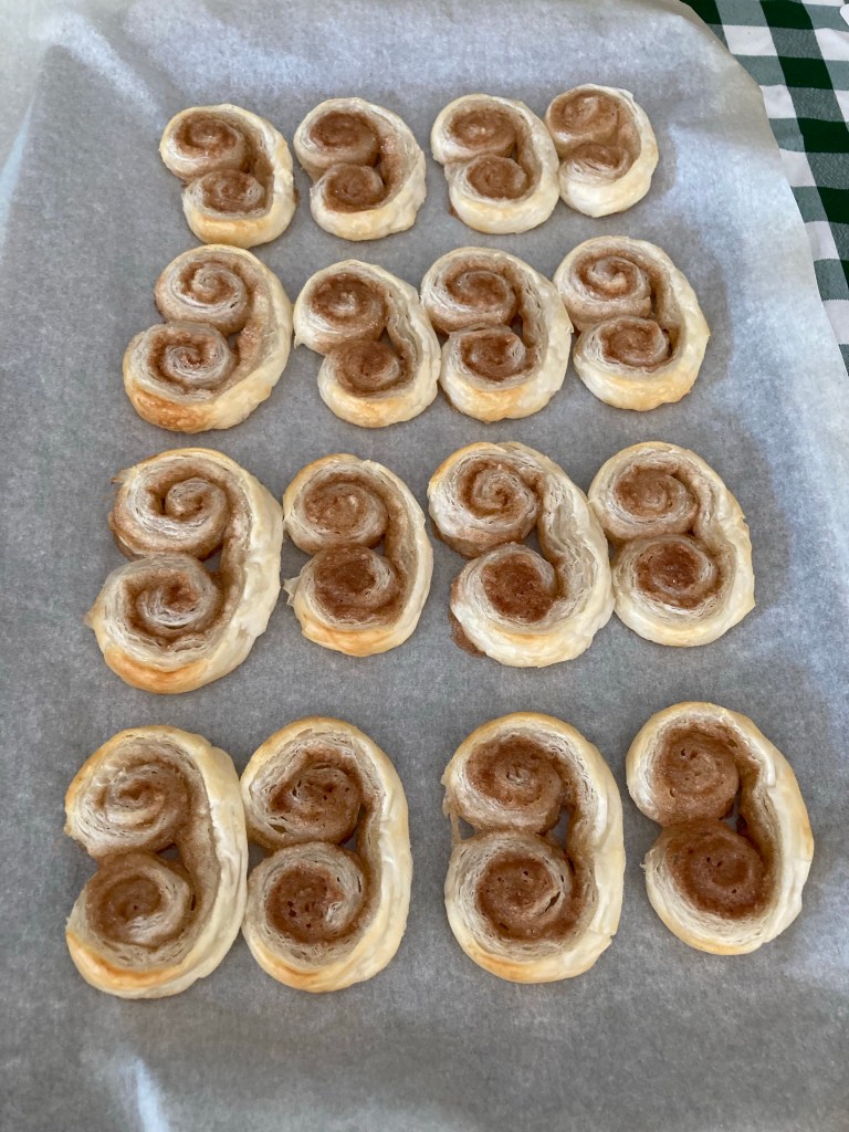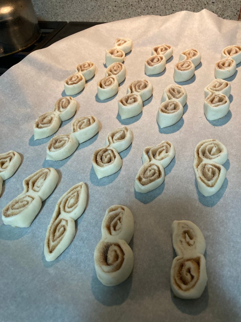 Sometimes you need to do a little reshaping on the backing sheet as they get pointed in the cutting process. Bake at 425 degrees for 8-10 minutes until they are golden on the edges. Let them cool on the baking sheet.