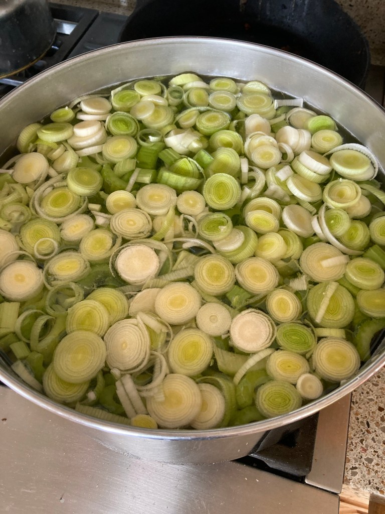 A while back I noticed I only had 2 quarts left of leek and potato soup so it was time to make more.