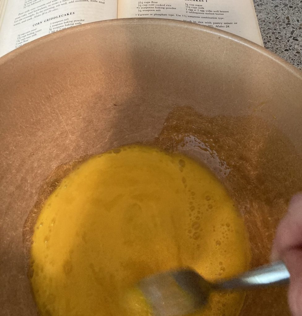 Once well blended. Cook on a griddle, or like me in a cast iron skillet.