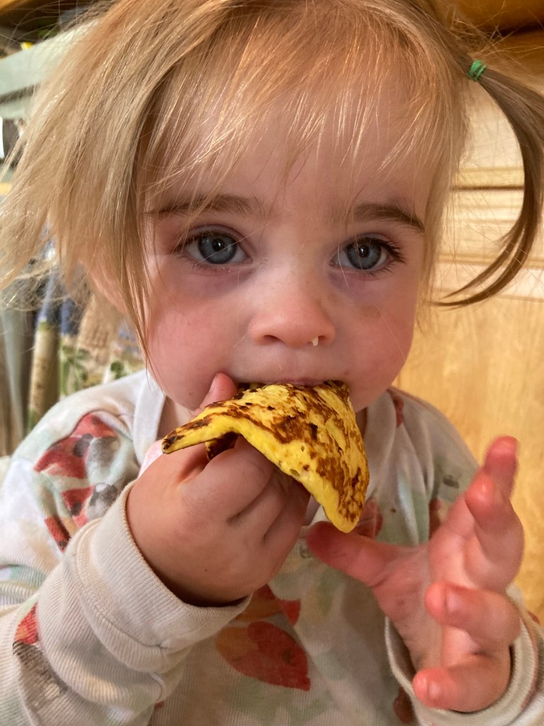 They taste like French Toast! We ate ours with a combination of toppings. My eldest wanted hers with sugar and cinnamon, my middle daughter wanted strawberry jam, my son wanted Nutella and the small one just wanted to eat them all just as they were.