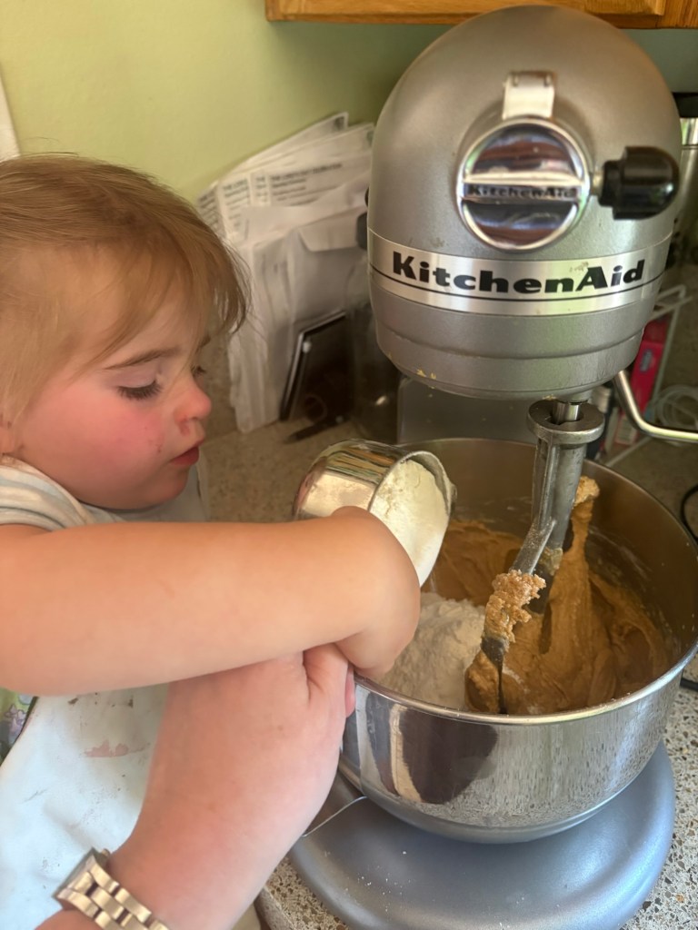Back to Winnie and Mommy’s cooking date, we stumbled upon a hand written recipe on the back of an illustration, realizing that we had all the ingredients we decided to make a new to us cookie. I also needed to redeem myself from earlier in the week when I attempted to make chocolate chip cookies which always fail in one way or another. Other cookies not a problem.