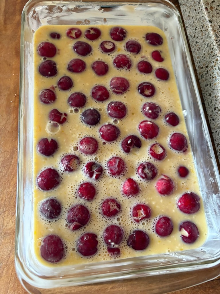 This recipe made a delicious, creamy almost custard like cake around the fruit that not only complemented the fresh fruit but also enhanced it.